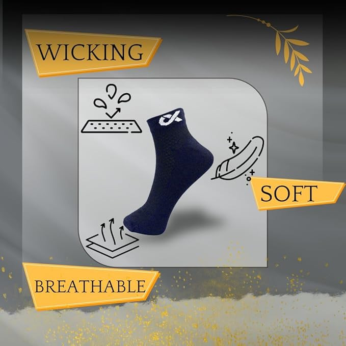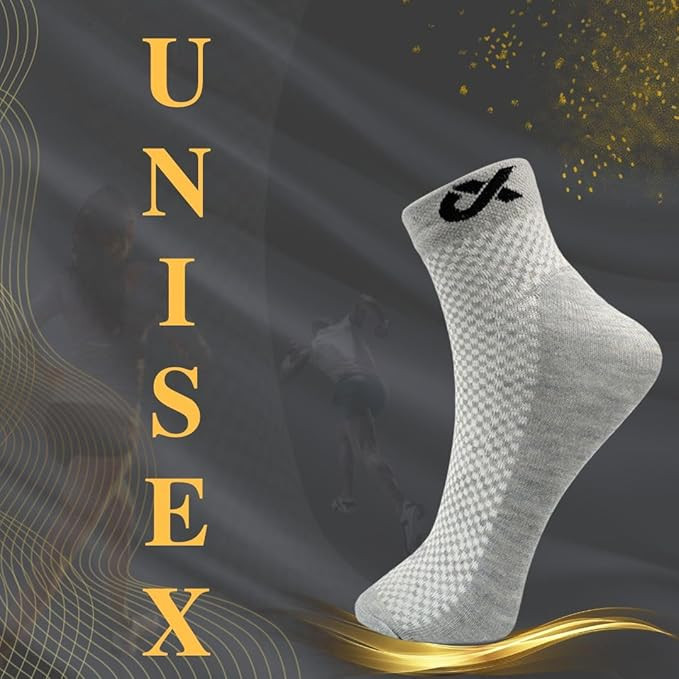 DURABLE: Pack of 3 pairs Multiple colors are available for ankle socks (Black, White & Grey socks). All feet fall into the same size between 7 and 11. Included are three sets of cotton ankle socks for men and women that are odor-resistant and have breathable mesh on top of the foot. A remarkably soft and quickly absorbs sweat while keeping your feet dry and protecting them from harm. VERSATILE: Fit For Gym, Casual Wear & Running Our athletic ankle socks are made to be used on a regular basis and improve your performance whether you're doing yoga & gym, cycling, running, walking, standing, travelling, or simply relaxing on the couch. The athletic ankle socks have excellent recovery and stretch. These athletic ankle socks won't break easily, So you may use them for a long time without worrying. STAY COOL: Our long-fiber cotton knitting technique makes our multicolor socks for men and women light and breathable, Allowing your feet to breathe easily whether exercising or jogging. For long-lasting protection and a soft landing with each step. The cool comfort fabric absorbs away sweat, keeping your feet cool and dry during the entire day. GOOD COMFORT: Sports Socks for further protection and comfort in high-wear areas, these men and women socks have soft around the ankle. Ankle socks for men and golf socks also provide stability for a proper fit and an arch that is suited to protect you as you walk, jog and run. EVERY SEASON: Our men's athletic unisex sports socks are neither too thick nor too thin, keeping you warm in the winter and cool in the summer. Our unisex cotton socks are expertly designed for various sports, including tennis, marathons, golf, cycling, trekking, and mountain climbing. Simple socks can be used with any everyday outfit by adults and teenagers.