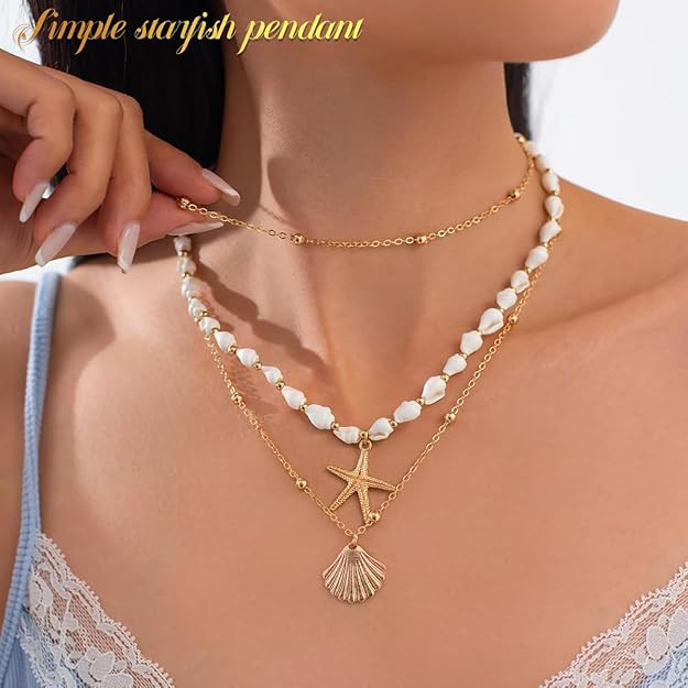 OCEAN-INSPIRED TRIO NECKLACE COMBO: Layered necklace set is inspired by the natural beauty of the ocean, featuring a conch shell charm, starfish pendant, and a slim dainty chain. Each piece captures the lively, carefree spirit of summer for a playful, coastal accent that brightens any outfit.