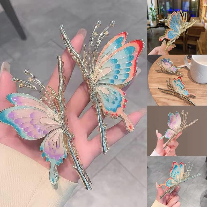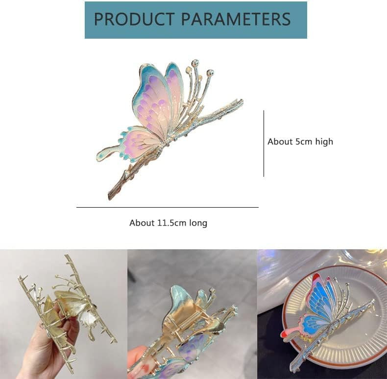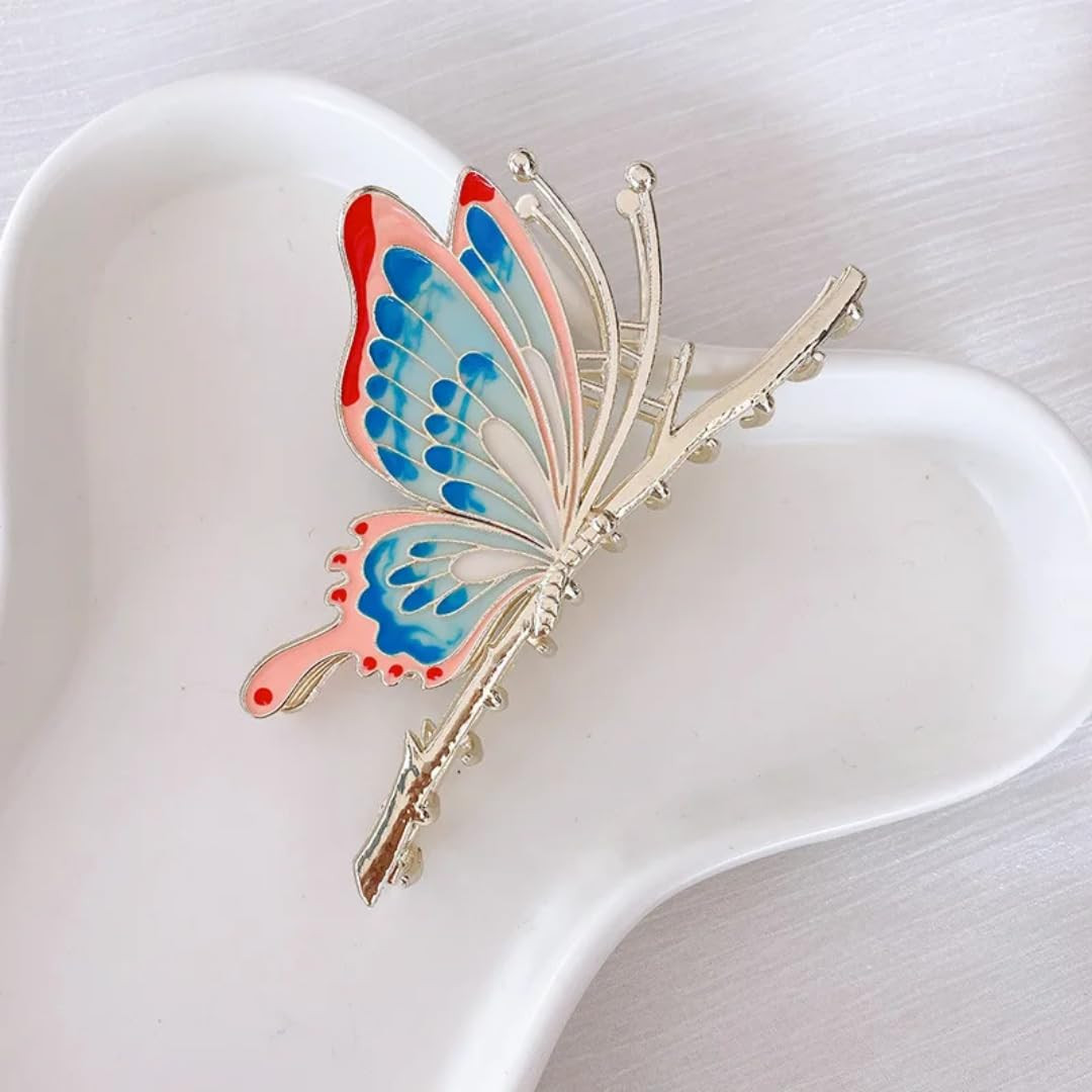 Rhinestone Golden Claw Clip, Embellished Korean Clutcher, Non- Slip Metal Claw Clip for Girls, Fancy Clutcher for Women, Pack of 1 (BLUE BUTTERFLY)