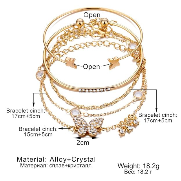 Set of 5 Stylish Multilayer Crystal Bangle Gold Plated Bracelet