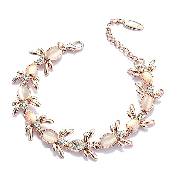 Valentine Rose Gold Jewellery Combo of 2 Designer Adjustable Link Alloy Bracelet Decorated with Cats Eye Stones & Crystal Elements for Women CO1000278 (Pink)