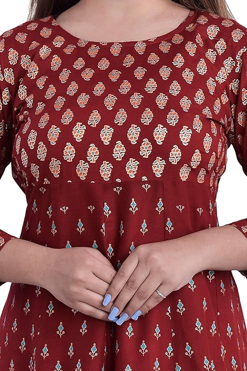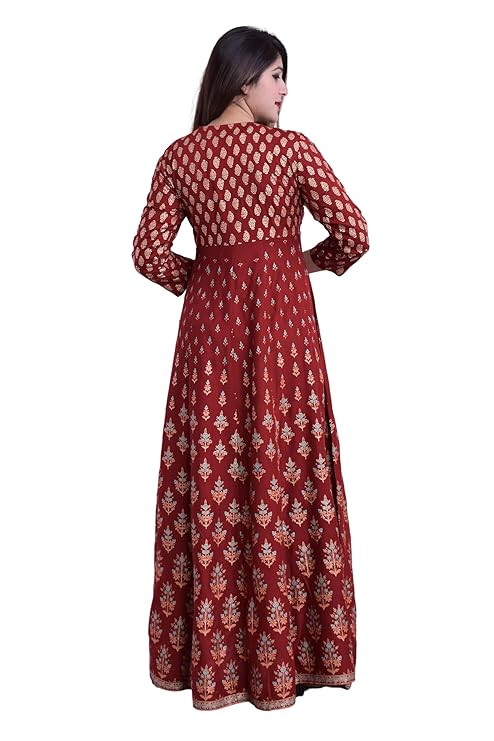 Material typeRayon LengthMaxi Occasion typeFestive (Diwali) Sleeve typeSleeveless PatternAbstract Print StyleEmpire Waist Country of OriginIndia