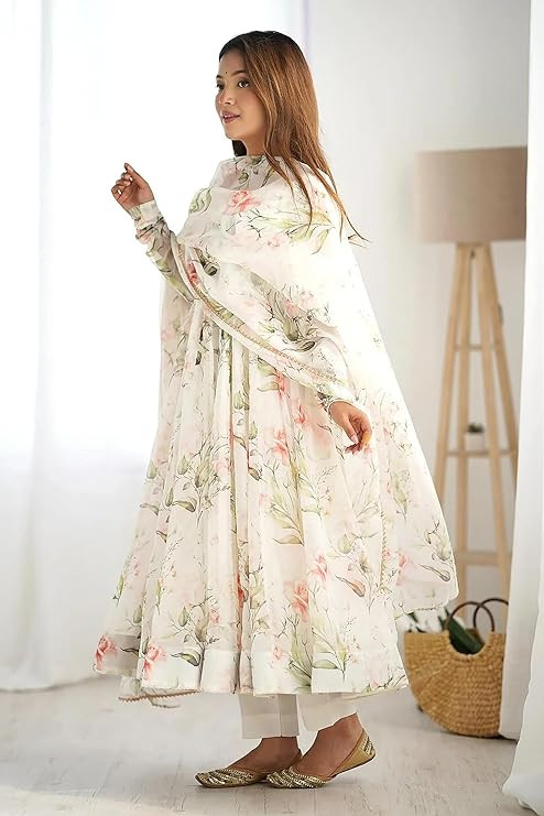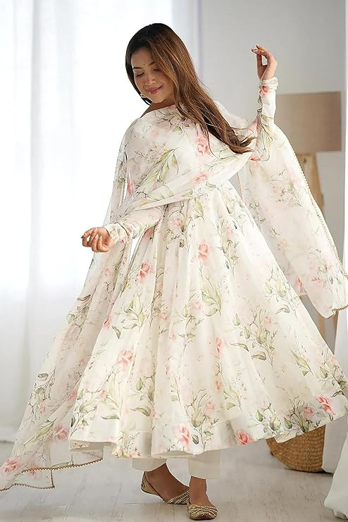 Step into effortless elegance with this floral Anarkali suits are thoughtfully crafted with flowar print & contemporary silhouettes, perfect for modern-day women who value tradition. Flare design create an elegant flow with every step — the print is soft yet striking, making stand out effortlessly.