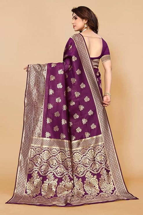 Women's Banarasi Saree Pure Kanjivaram Silk Saree Soft new ladies 2023 Design Wear Pattu Sarees Latest Cotton Party Sari collections With Blouse Piece for Wedding sadi (PARI 63 NEW WINE)