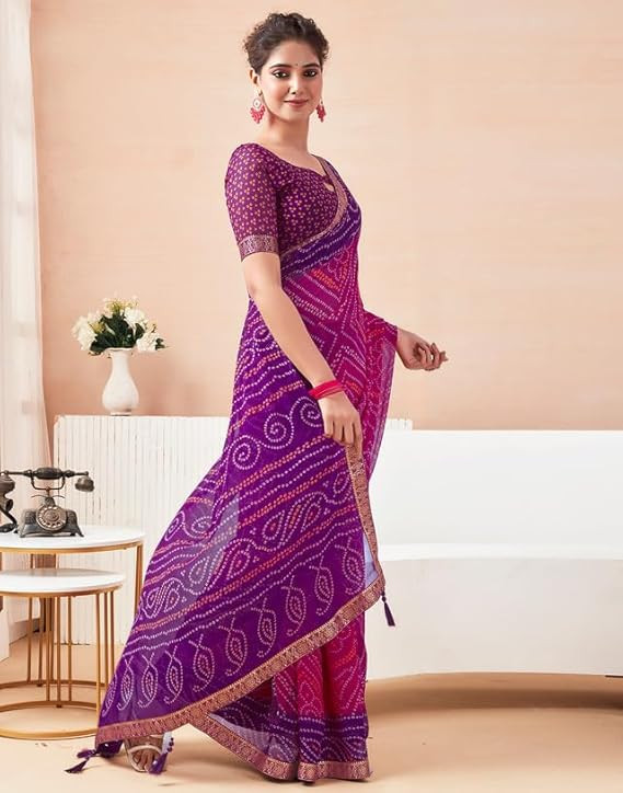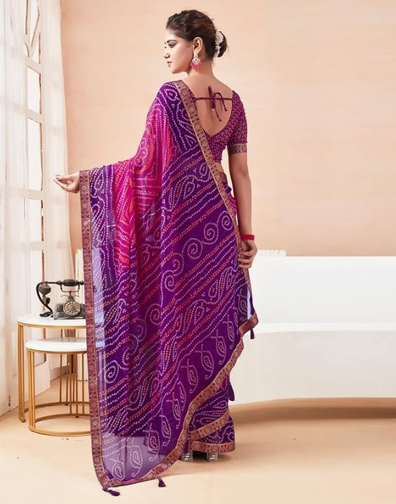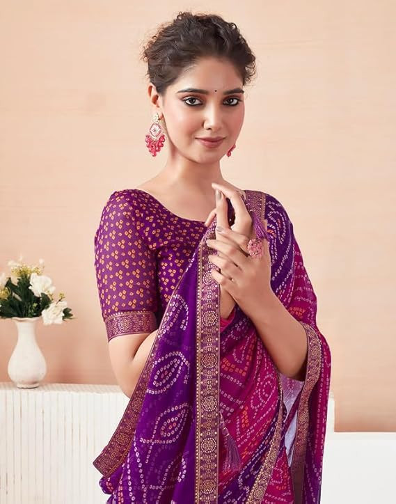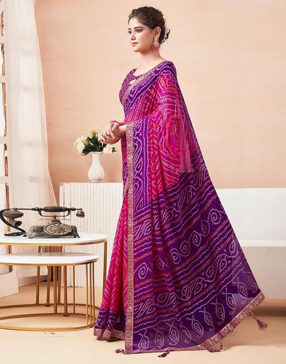 Women's Bandhani Printed Chiffon Saree with Blouse