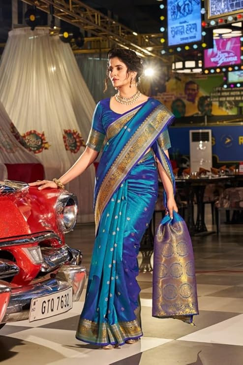 Womens Kanjivaram Silk Saree with Zari Woven Saree With Blouse Piece Gorgeous beautiful color saree is well crafted with high quality Kanjivaram Silk Fabric soft finished, heavy Zari border with Rich pallu, comfortable to wear; artistically woven by our skilled artisans; now flaunt your sophisticated appearance on any special function!