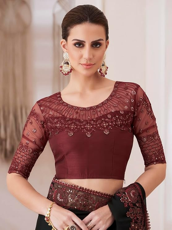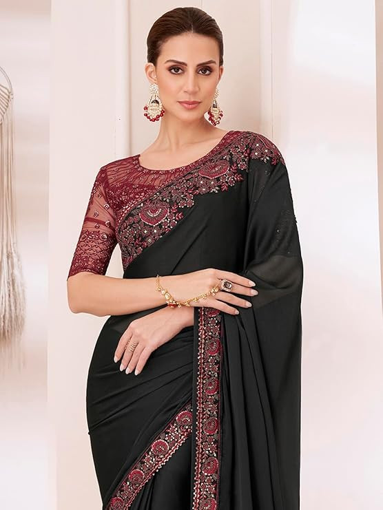 • Color: Black Saree || Maroon Blouse