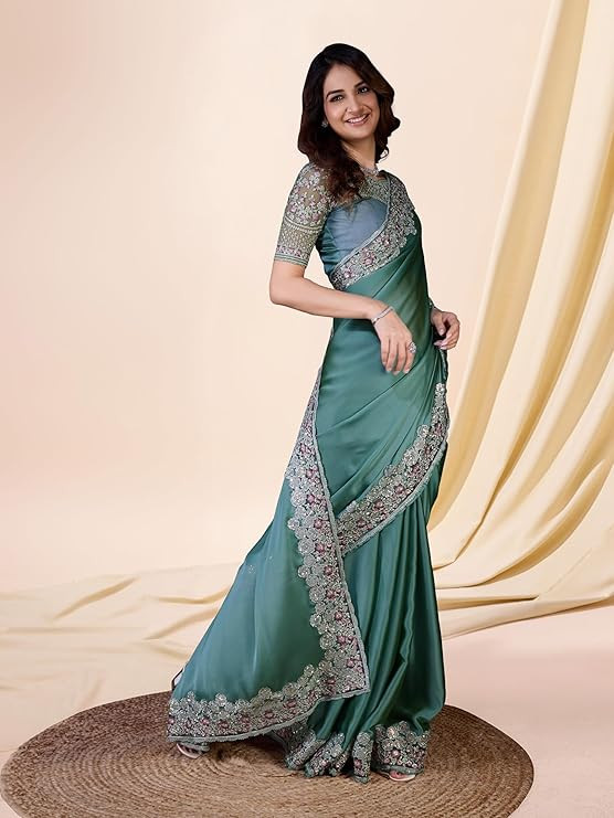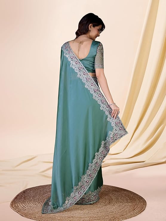Women's Silk Embroidery Saree with Unstitched Blouse Piece