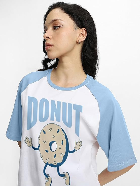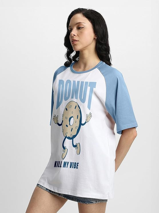 100% Pure Cotton Oversized Fit Drop Shoulder Graphic Printed Raglan Sleeves Boyfriend T-Shirt for Women (Sizes: S to 2XL)
