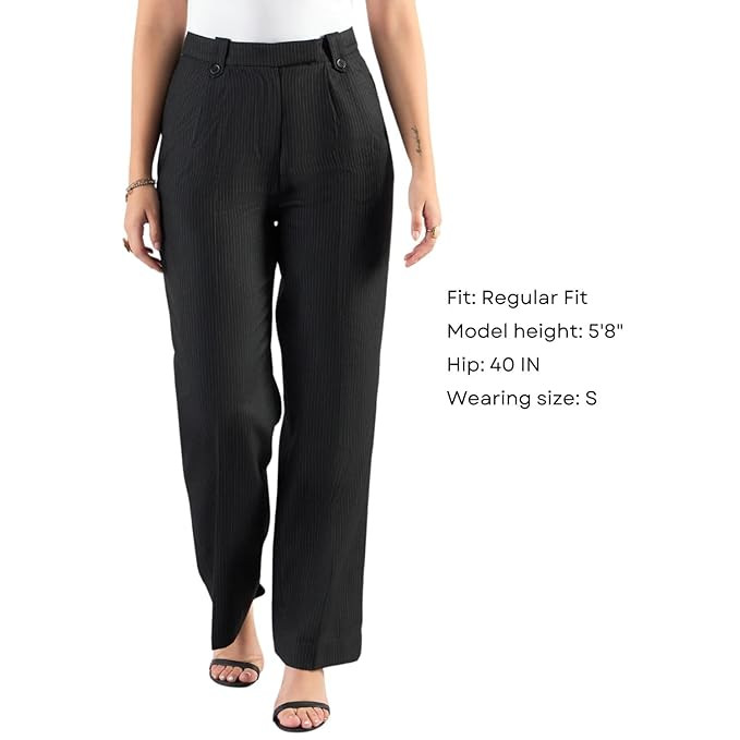 • Premium Quality Fabric: Our women trousers are crafted from premium, breathable textured fabrics, ensuring long lasting durability. These stylish trousers feature a perfect fit, providing a flattering silhouette and all-day comfort.