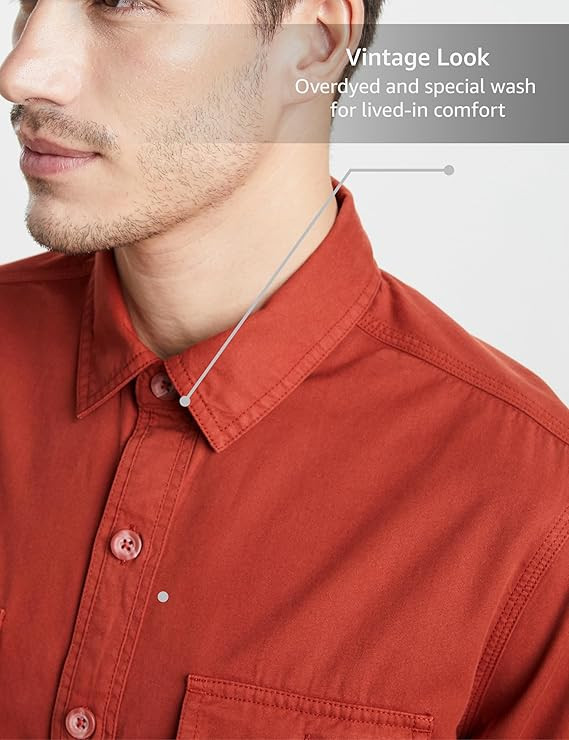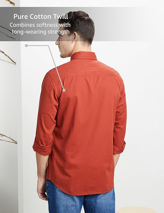 Men's Casual Washed Cotton Twill Shirt (Regular Fit)