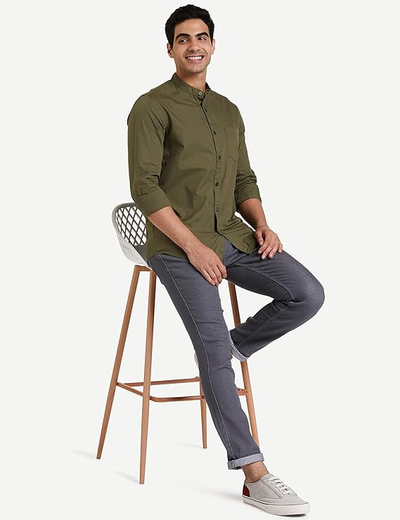 • PRODUCT DETAILS: Regular-fit shirt featuring a mandarin collar, full sleeves, a single chest pocket, and a standard length for a clean, classic look.